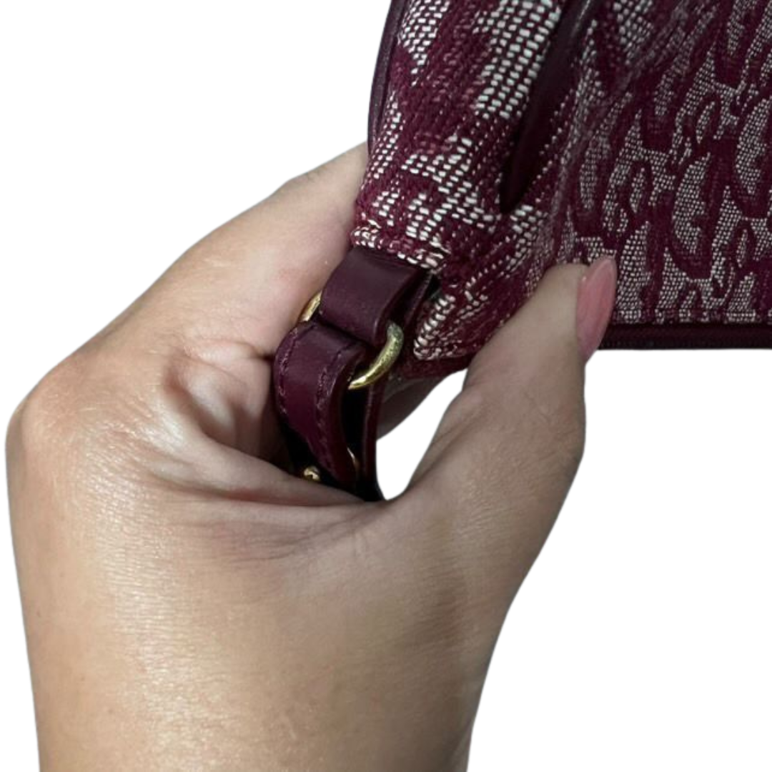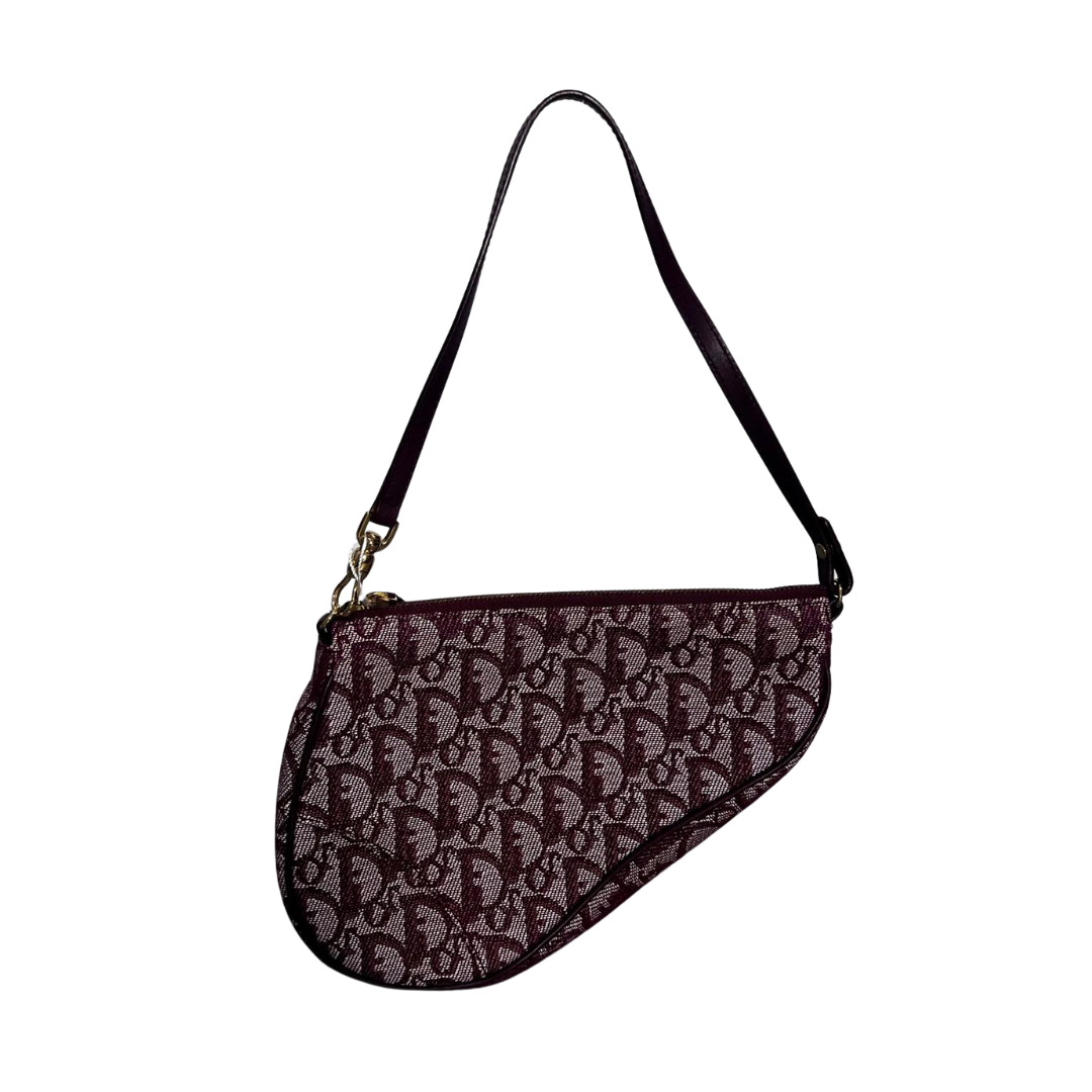 דיור סאדל – דגם אייקוני מבית דיור בעיצוב אסימטרי המזוהה עם תחילת שנות ה־2000, בגוון בורדו עשיר עם מונוגרם קנבס קלאסי של הלוגו “Dior Oblique”. התיק משלב רצועת עור חלקה בגוון תואם וסגירת רוכסן עליונה שמעניקה לו מראה קליל אך מתוחכם. פריט וינטג' נדיר שמביא איתו את רוח התקופה בה הושק הדגם – שילוב של יוקרה פריזאית עם שיק נונשלנטי. מושלם לשילוב במראה ערב או יום־יום עם טאץ' אופנתי נצחי.